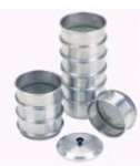 Set of 9 sieves , nominal mesh numbers 10, 20, 40, 60, 80 and 100 , 120 and 250 mounted in alumunium frames with alumunium lid and receiver.